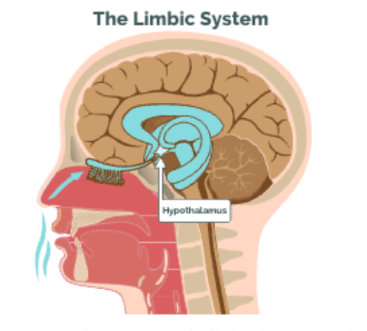 Eteeriset öljyt ovat tuoksuvia, pieniä, haihtuvia yhdisteitä, molekyylejä, jotka nopeasti ja helposti kiinnittyvät nenäontelon yläosissa sijaitseviin hajuhermoreseptoreihin. Tuoksut kulkeutuvat suoraan nenästä ihmisen aivojen limbiseen järjestelmään, joka on ihmisen tunne- ja muistokeskus. Tämä hajuhermokeskus on suoraan yhteydessä hypotalamuksen kautta aivolisäkkeeseen. Aivolisäke erittää hormoneja, jotka säätelevät muun muassa verenpainetta, nälkää, janoa, kilpirauhasen toimintaa, unirytmiä, sukupuolihormoneita ja muistia. Tämän vuoksi tietyt tuoksut herättävät muistoja ja tunteita ja toisaalta uudet tuoksut muodostavat ja muokkaavat aivoihin uusia väyliä, uusia muistoja ja tunteita.